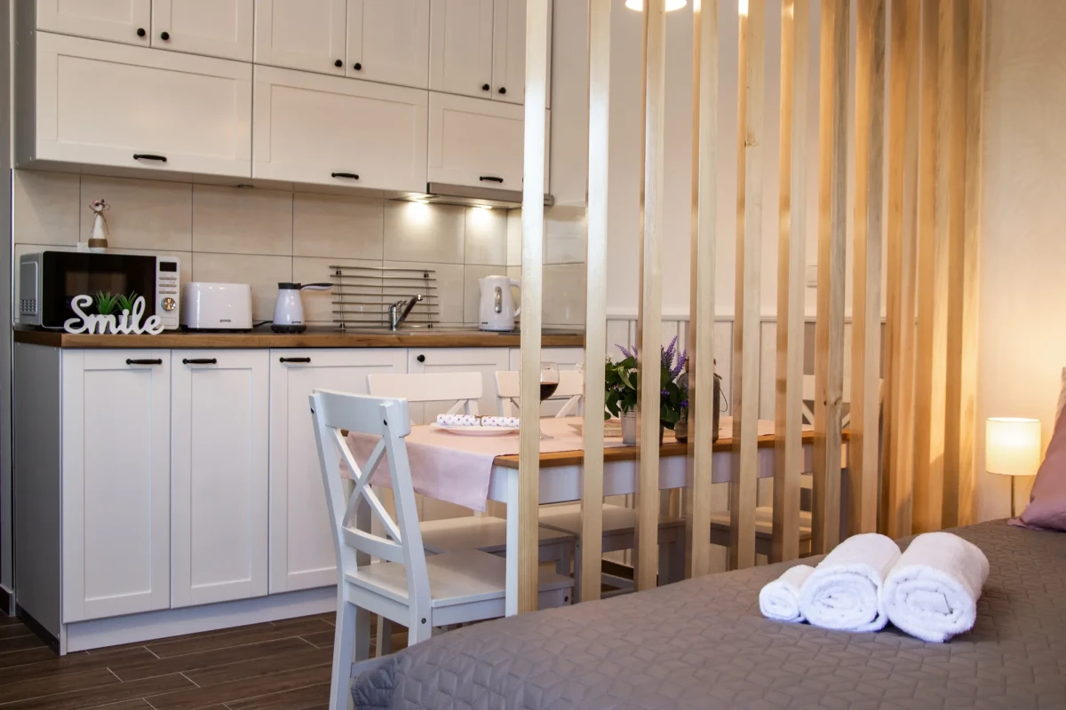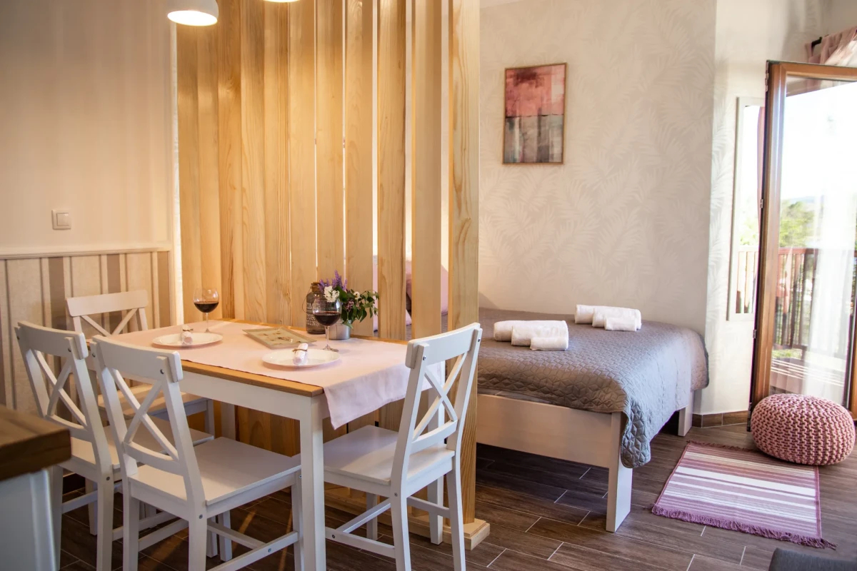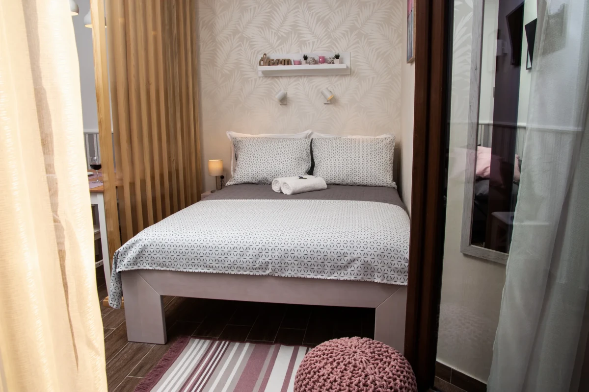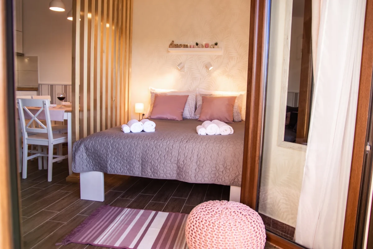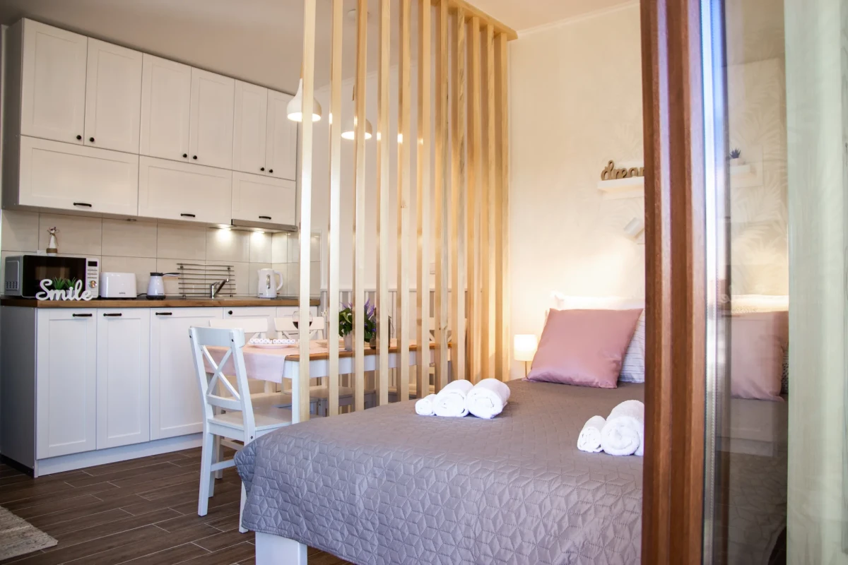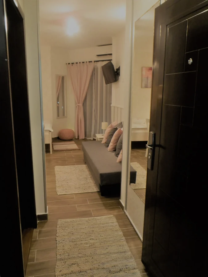 Apartman je nov, kao i kompletan inventar u njemu, luksuzno opremljen u skandinavskom stilu. Poseduje inverter klimu, komarnik, TV, kablovsku, besplatan internet i obezbeđen parking. Kuhinja je kompletna i moderno opremljena, kao i kupatilo. Osim francuskog kreveta, poseduje i ležaj na razvlačenje.