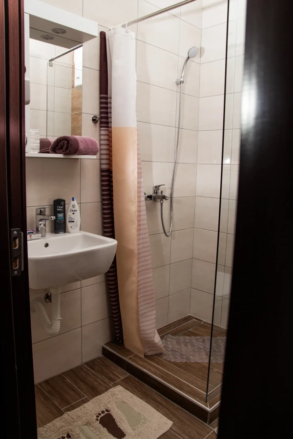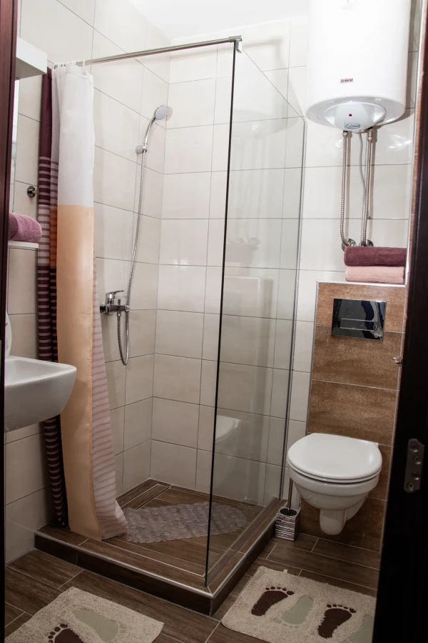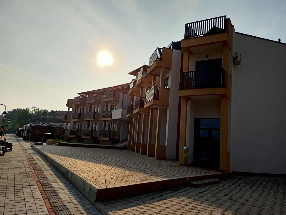 Plaža je udaljena 10 m, restoran 10 m, prodavnica 100 m, a akva park 200 m.