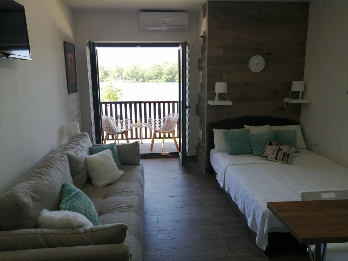 Apartman Ferias se nalazi na samom šetalištu i ima terasu koja gleda na jezero.