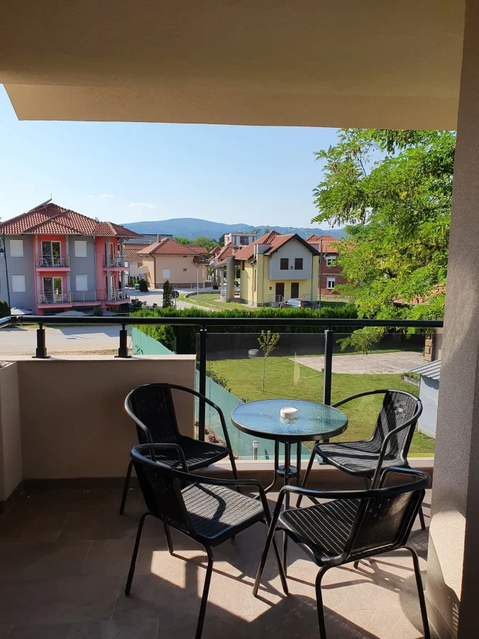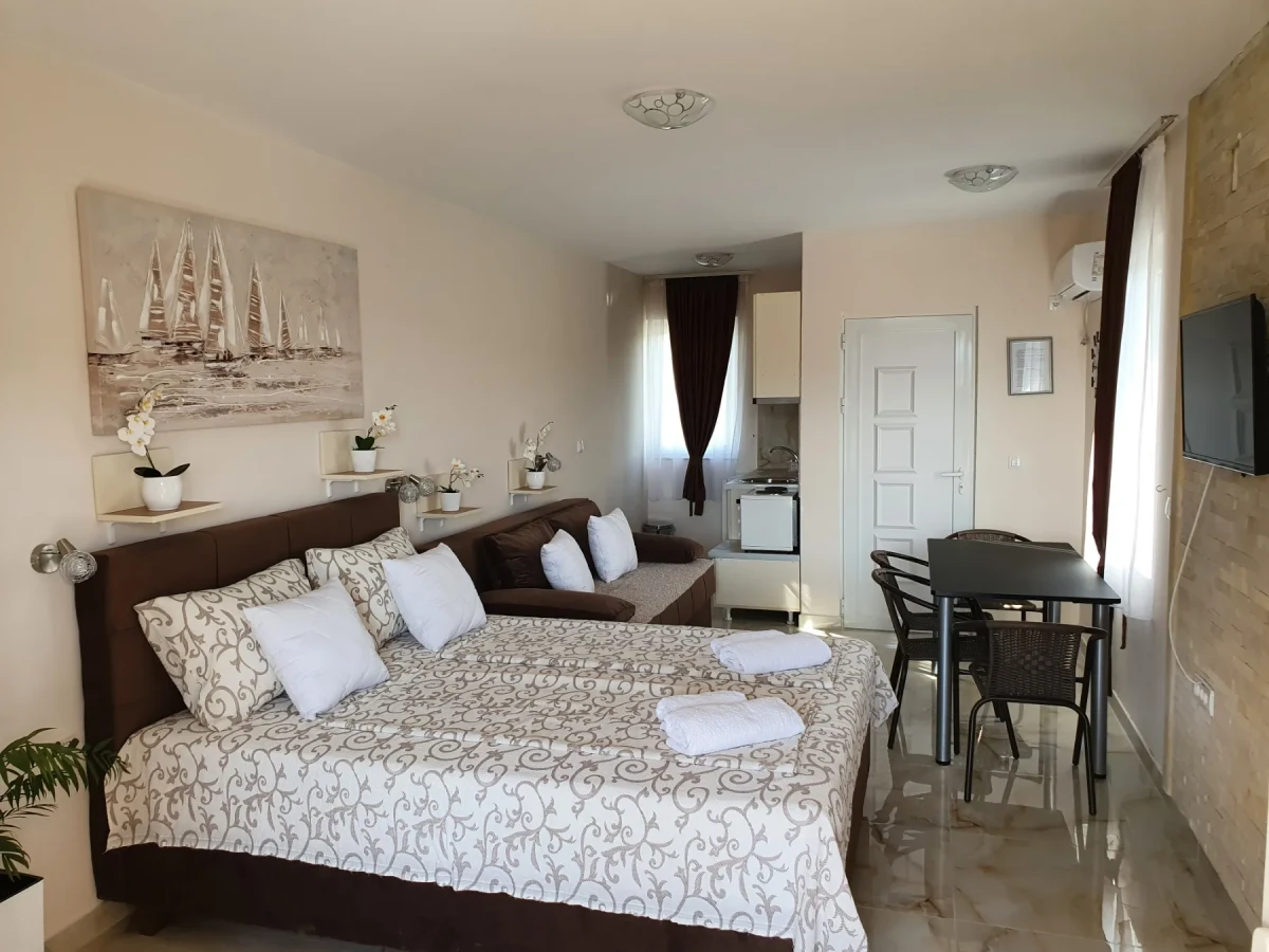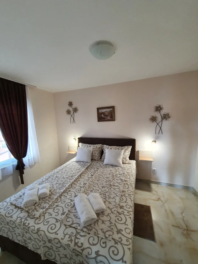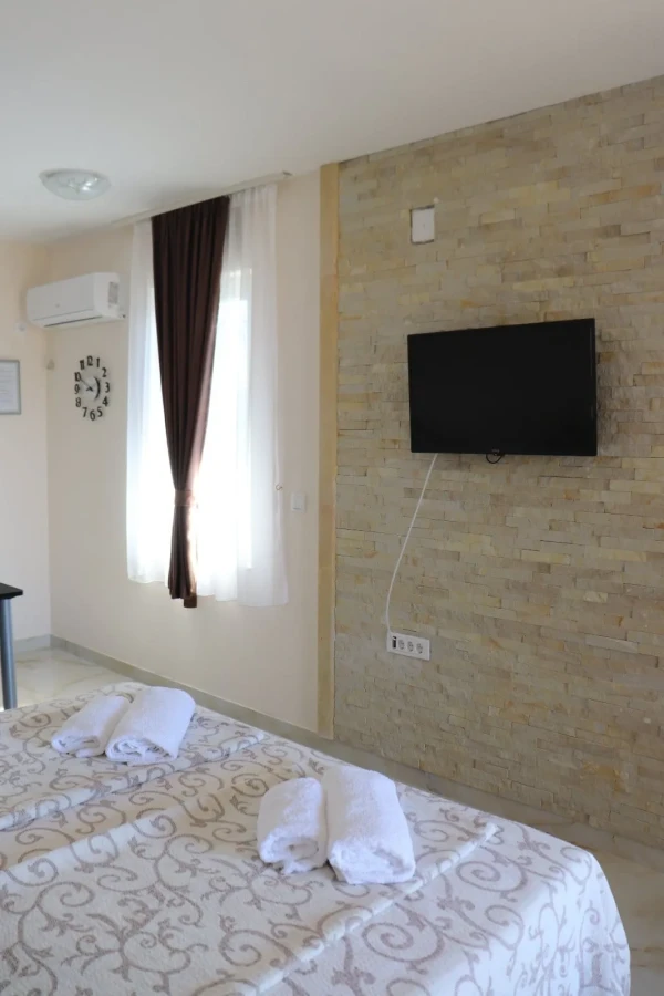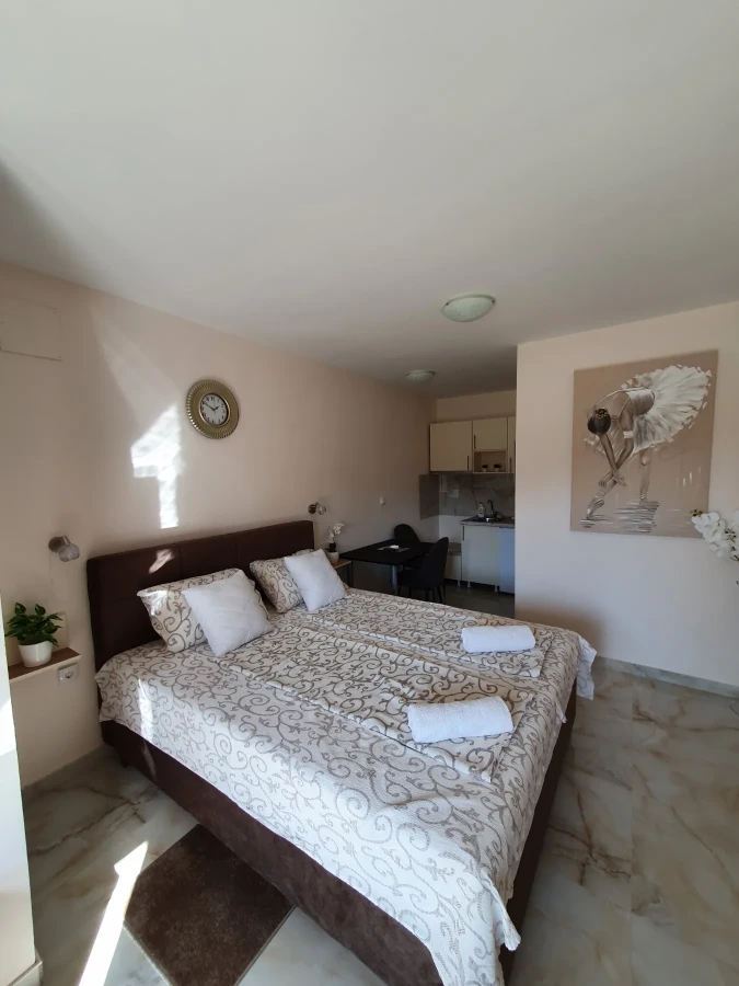 Svaki apartman poseduje kuhinju, kupatilo, terasu, klima uređaj, frižider, televizor i internet.