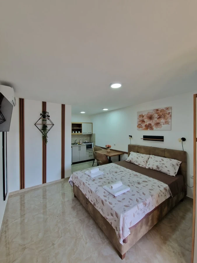 Objekat je izgrađen 2025. godine i sadrži 2 dvokrevetna studija i 4 apartmana sa odvojenom spavaćom sobom i trosedom na razvlačenje u dnevnom boravku. Svaki od apartmana poseduje potpuno opremljenu kuhinju, kupatilo, terasu, klima-uređaj, frižider, televizor i internet.