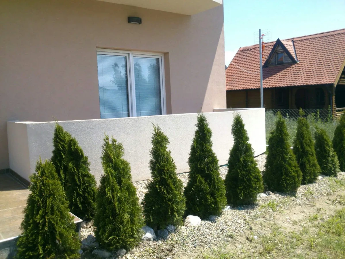 Sobe su površine 19 m² i 24 m². Vila ima svoje dvorište, a za svaku sobu obezbeđeno je parking mesto.