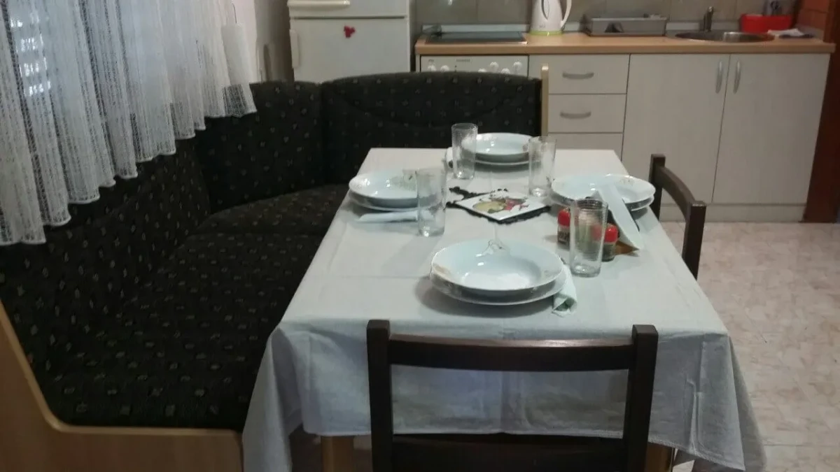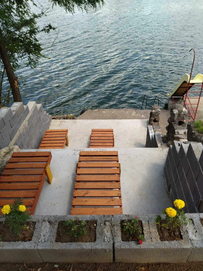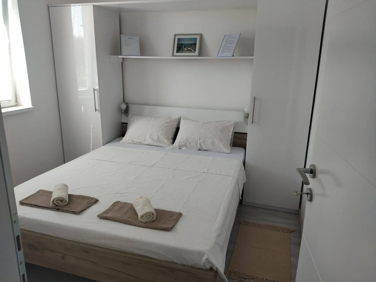 Ovaj smeštaj je pogodan za boravak do 4 osobe. Kompletno je opremljen i uključuje kuhinju, kupatilo, dnevni boravak i odvojeni spavaći deo. Takođe, u ponudi je i studio apartman na plaži, na samo 20 koraka od vode, u prizemlju zgrade sa sopstvenim dvorištem.