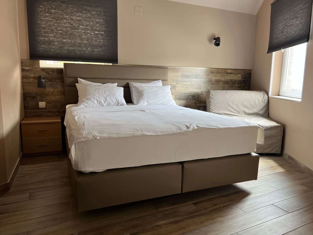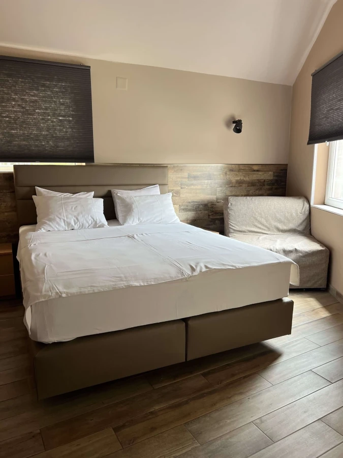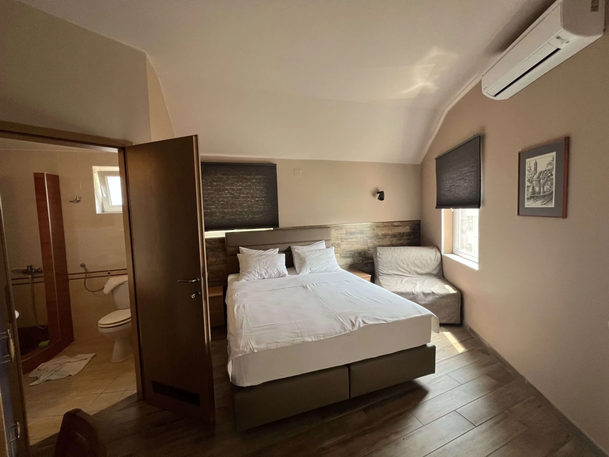 Gostima su na raspolaganju moderno opremljene sobe sa kupatilom. Svaka soba je klimatizovana, ima kablovsku televiziju i frižider. Smeštaj ima 15 dvokrevetnih soba, od kojih 11 soba ima pomoćni ležaj.